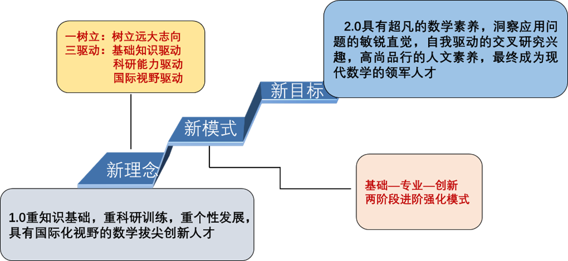 自我院数学拔尖计划首批入选“拔尖计划2.0”以来,我院依据“树立远大志向,以学生自我兴趣驱动式的知识学习、科研创新、国际协同”的新培养理念,强化“基础-专业-创新”进阶的培养模式,完善数学与多学科交叉应用特色鲜明的拔尖人才培养体系,努力造就“爱国、励志、求真、力行”的高水平数学拔尖创新人才,取得了理想的培养成效。