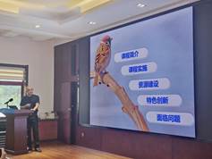 西安电子科技大学的朱佑彬老师带来了“西电《数学分析》课程建设”的内容分享, 整体介绍分析课程简介、课程实施、资源建设、特色创新以及面临问题五个部分的内容。同时也展现了课程的基本情况、课程的具体实施、线上资源的建设情况、线下一流课程的特色创新以及目前所面临的几个问题。朱老师轻松幽默的汇报风格为会场营造了愉快的氛围。