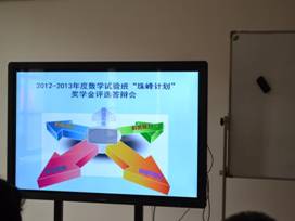 按照我校基础学科拔尖人才培养计划的有关安排,必赢集团网站于2013年11月3日组织了2012—2013学年数学试验班“珠峰”奖学金评选答辩会。朱旭、王卫、李田及各班班主任等老师担任评委,数学试验班二、三、四年级近30名学生逐一进行了答辩。