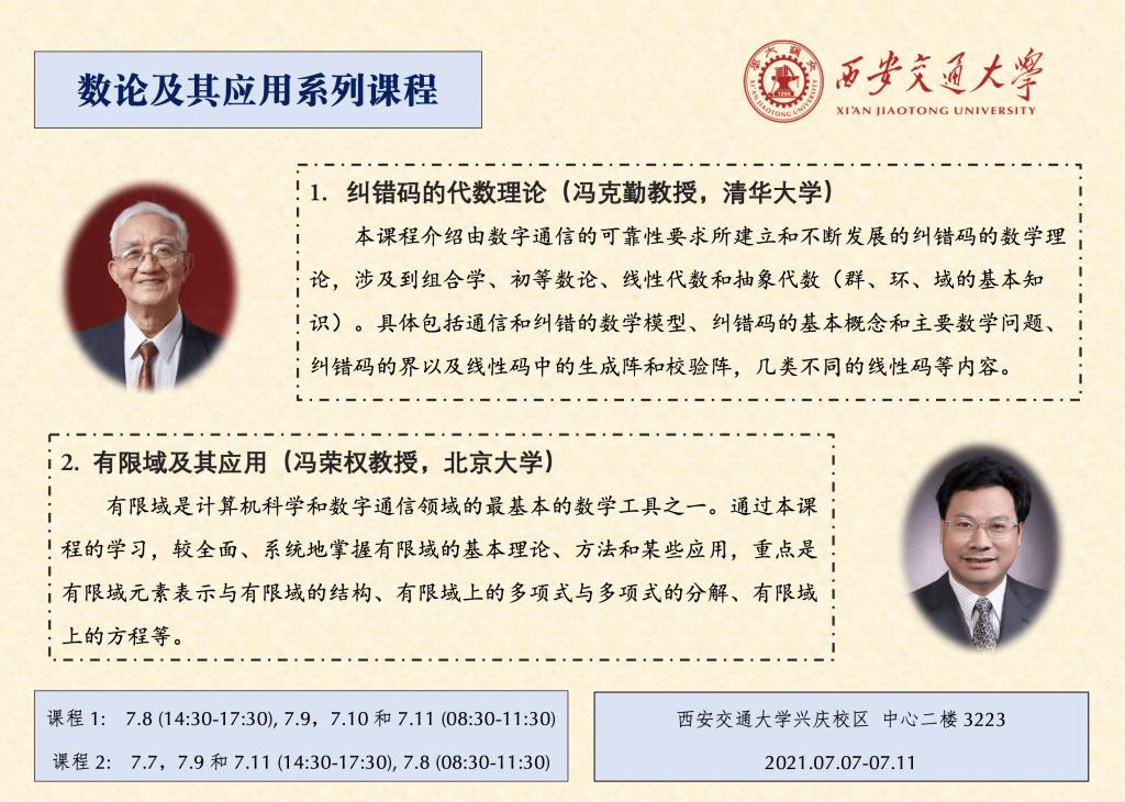 【数论及其应用系列课程】冯克勤教授、冯荣权教授